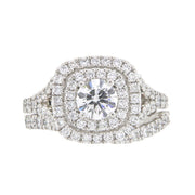 Authentic 2.29ct Double Halo Diamond Platinum Bespoke Premium Quality Wedding Ring Set - A121659. Crafted in high purity gold jewellery.